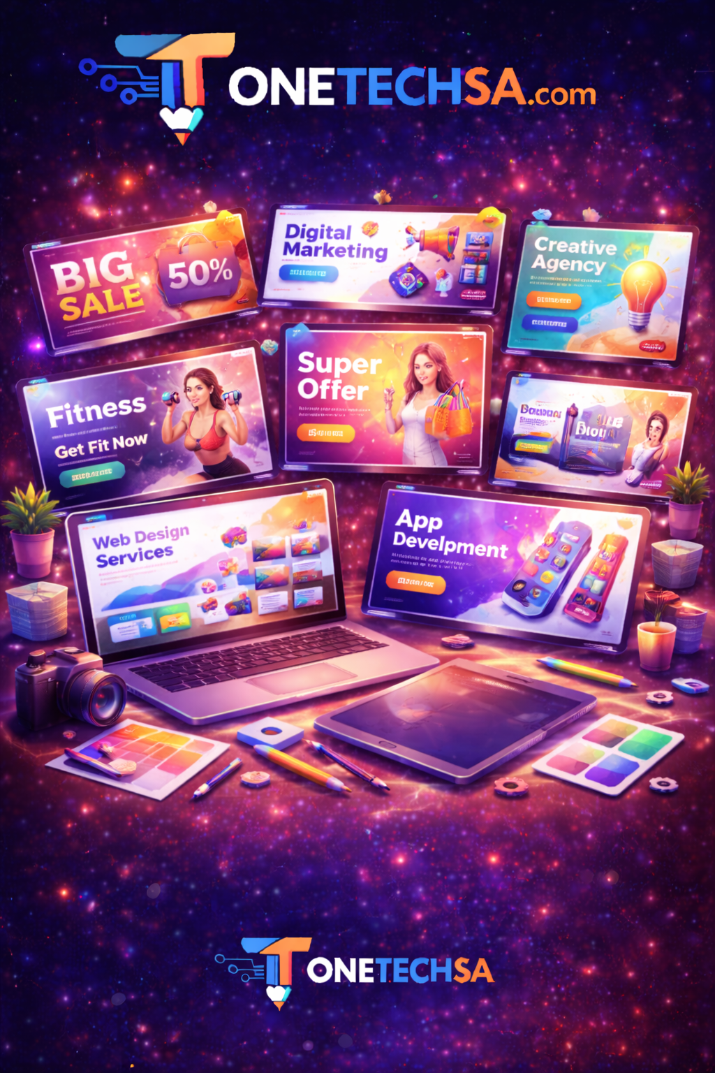مقاسات متنوعة: نقدم لك بنرات مخصصة لمختلف منصات الإعلان مثل إنستجرام، تويتر، فيسبوك، وجوجل، مع التوافق التام مع متطلبات كل منصة.